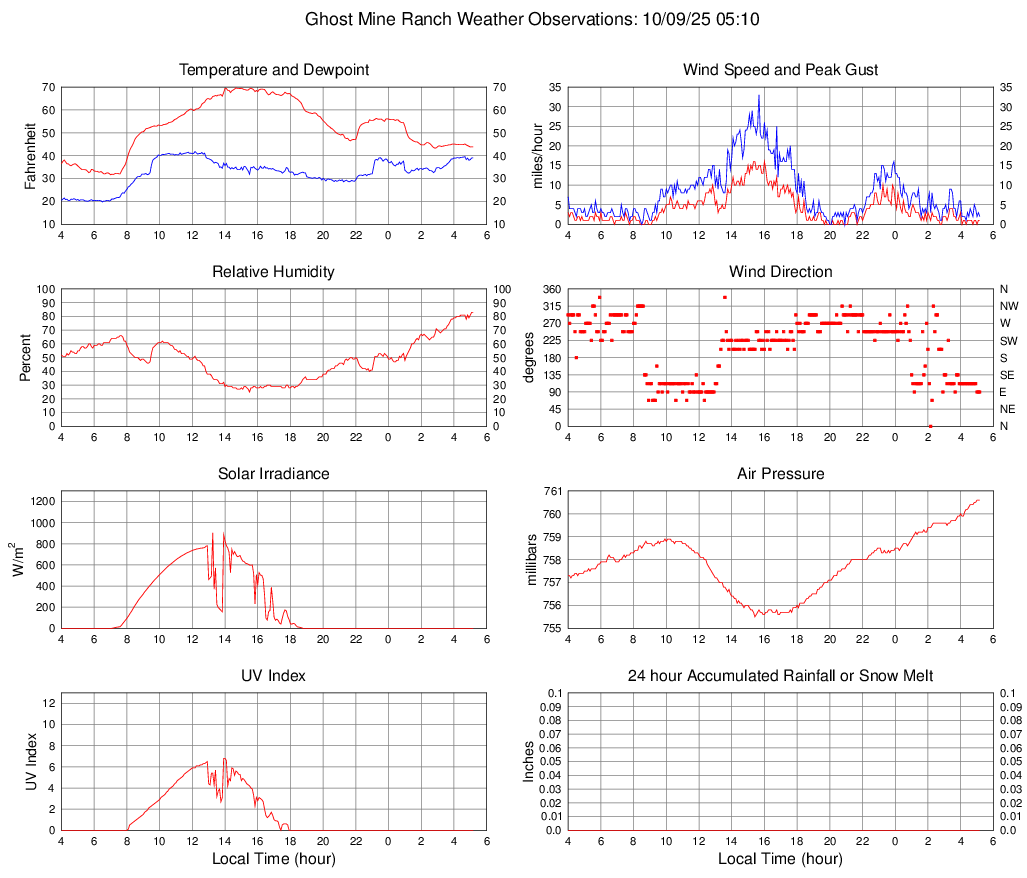 Temperature (F) 44.2 31.7 @ 07:00 69.6 @ 14:40 52.5