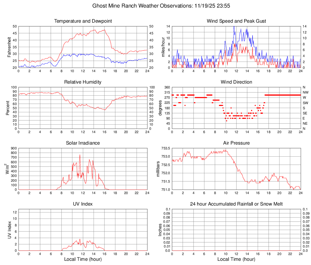 Temperature (F) 32.8 23.9 @ 02:05 47.5 @ 16:00 34.2