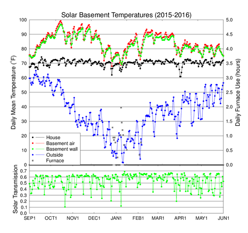 location. Sunny days have a solar transmission near 0.7, and cloudy days