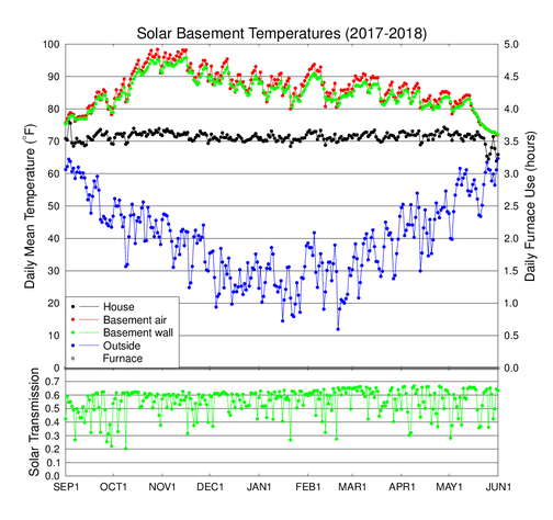 location. Sunny days have a solar transmission near 0.7, and cloudy days