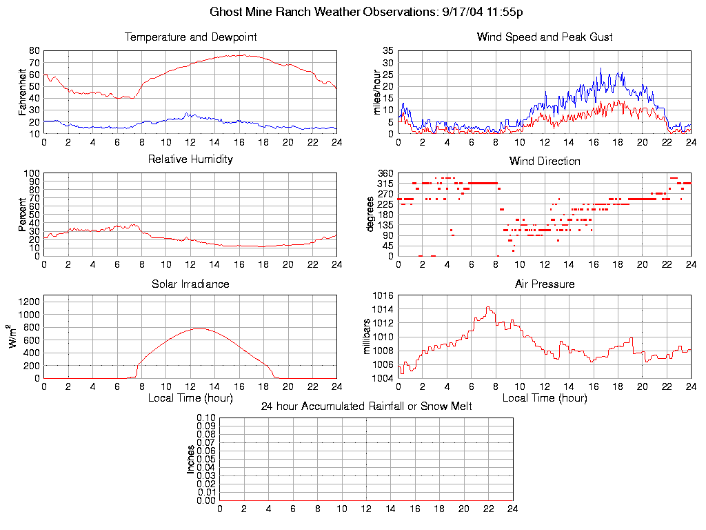 Temperature (F) 47.6 39.9 @ 06:15 76.7 @ 16:25 59.8