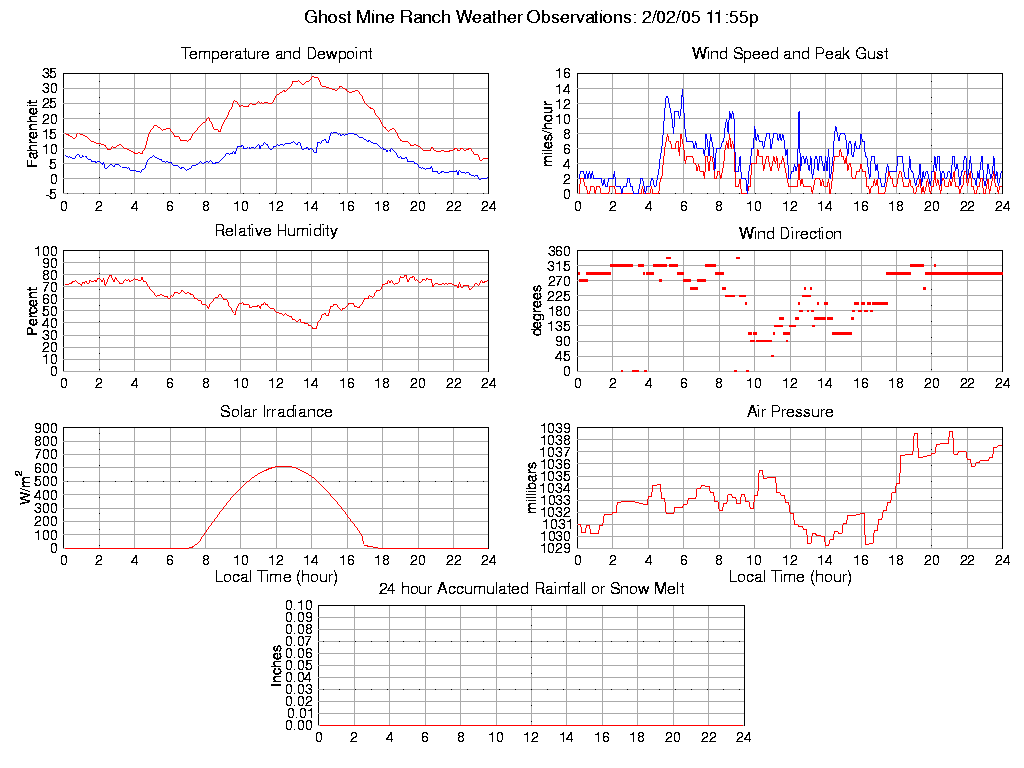 Temperature (F) 6.7 6.1 @ 23:35 34.1 @ 14:05 18.2