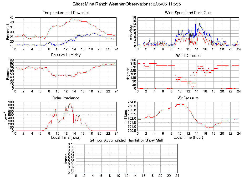 Temperature (F) 26.6 22.9 @ 03:20 43.9 @ 13:15 32.2