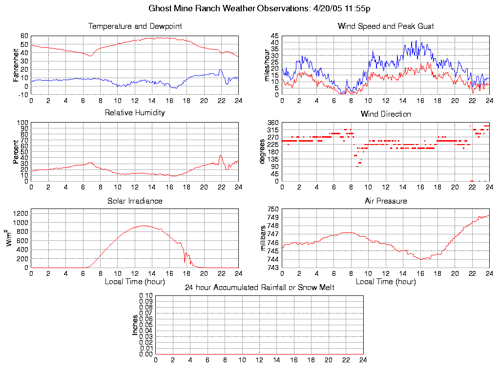 Temperature (F) 35.5 35.5 @ 23:55 58.1 @ 15:05 47.9