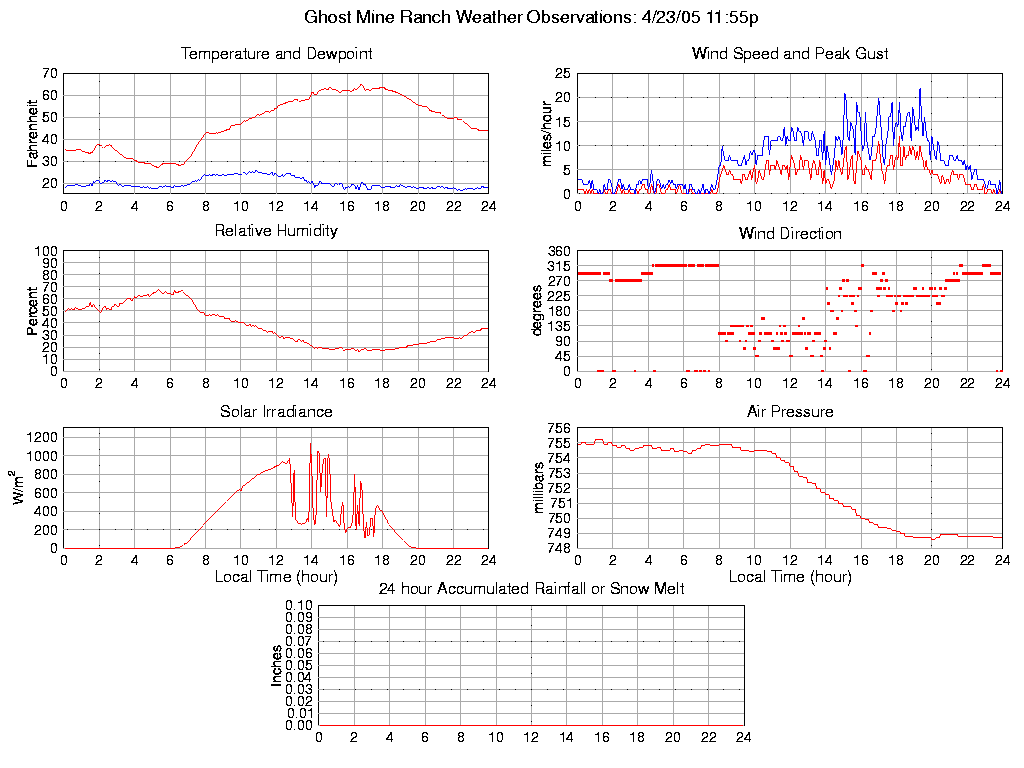 Temperature (F) 43.8 27.2 @ 05:20 65.0 @ 16:50 47.3