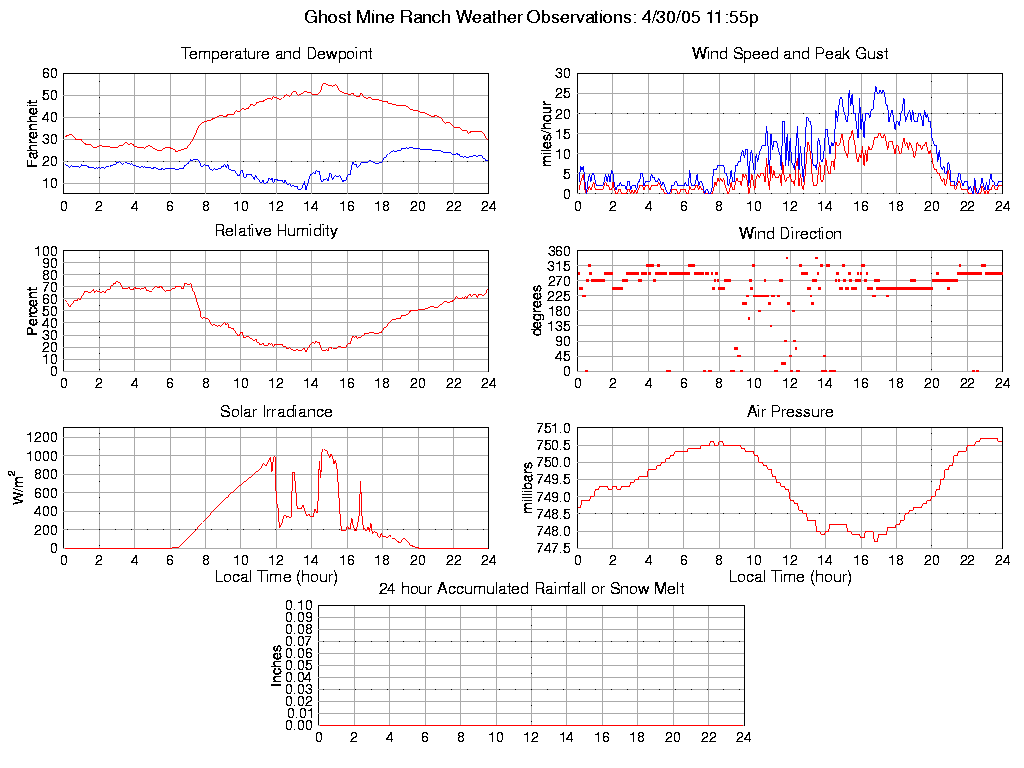 Temperature (F) 29.7 24.5 @ 06:20 55.6 @ 14:40 39.2