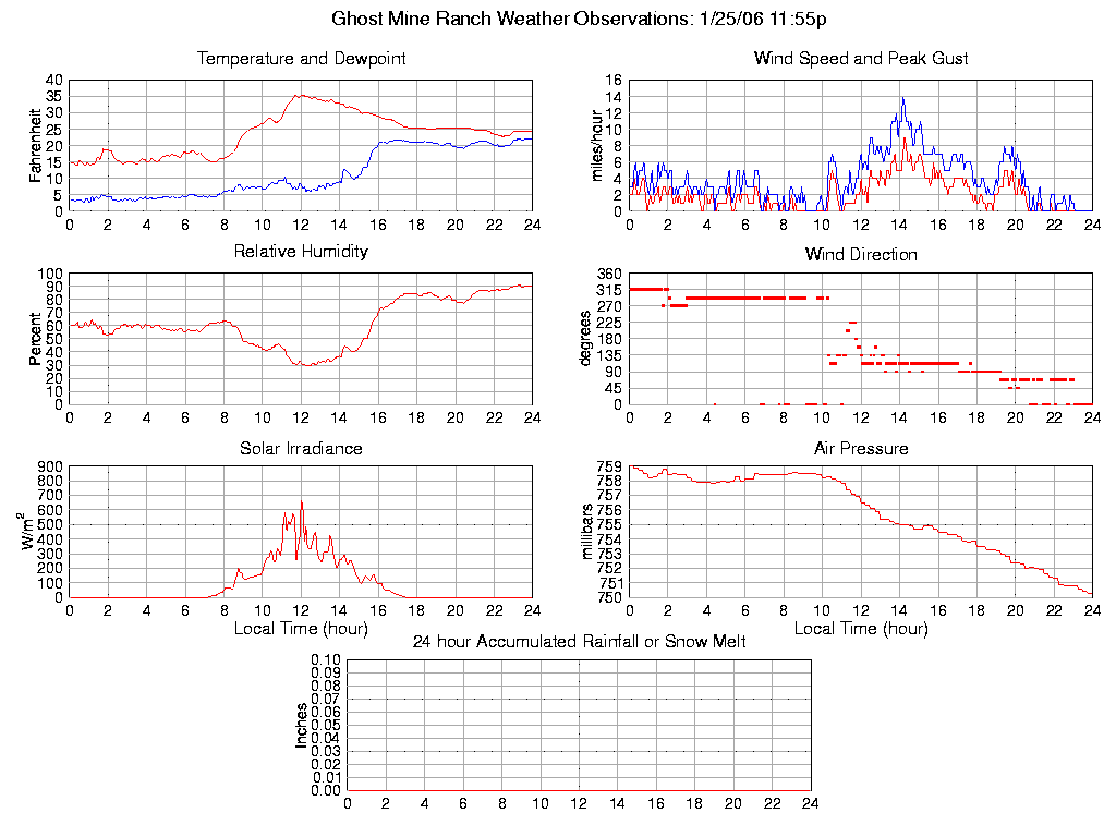 Temperature (F) 24.5 13.8 @ 01:05 35.5 @ 12:05 23.6