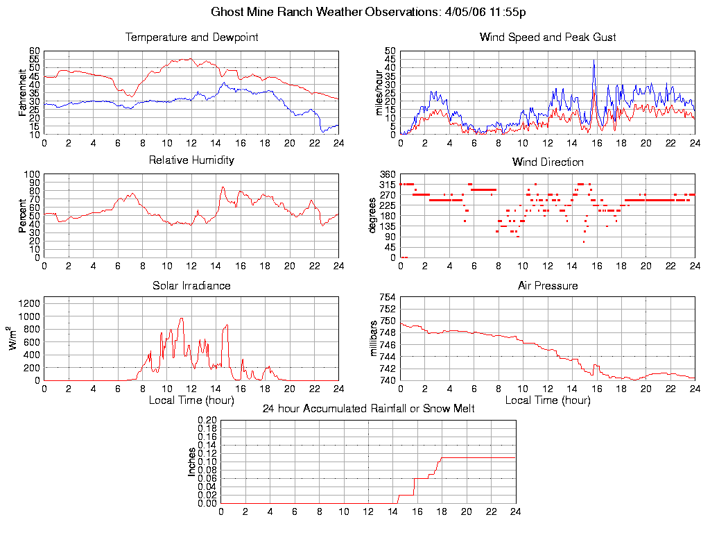 Temperature (F) 31.3 31.3 @ 23:55 55.7 @ 11:55 44.4