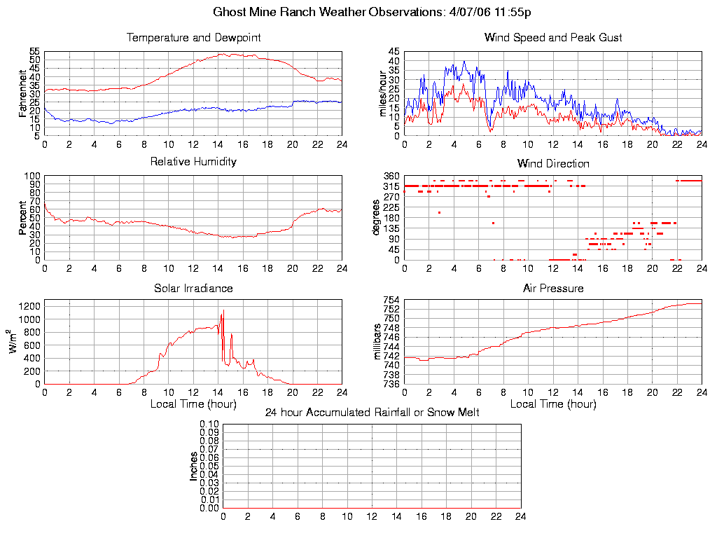 Temperature (F) 37.6 31.3 @ 00:00 53.8 @ 14:25 41.4