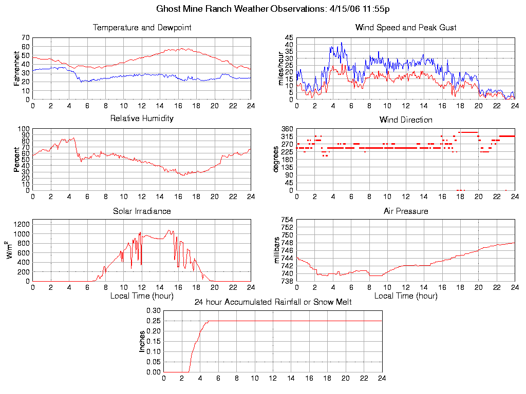 Temperature (F) 34.3 34.3 @ 23:55 58.1 @ 16:20 44.9