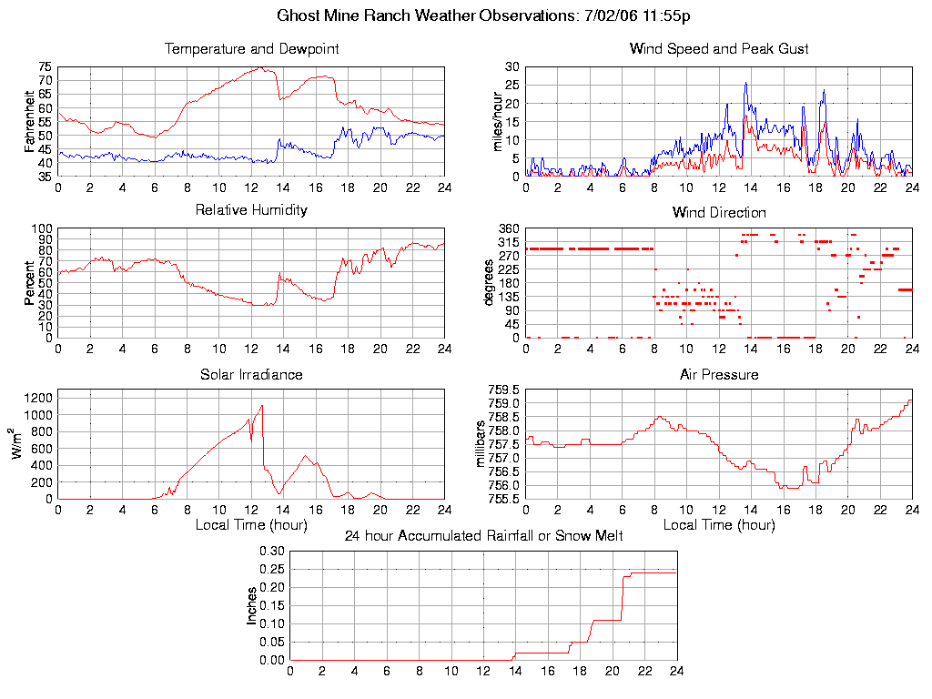 Temperature (F) 53.9 49.1 @ 06:05 74.9 @ 12:30 60.5