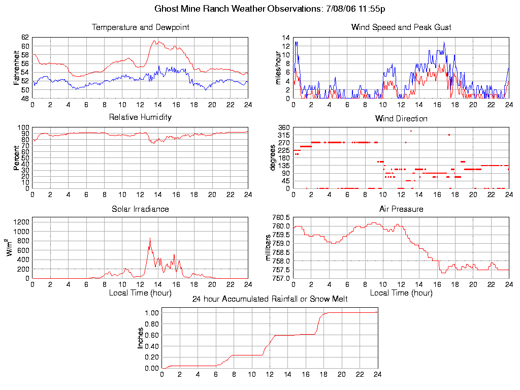 Temperature (F) 53.8 52.9 @ 05:10 61.2 @ 13:30 55.9