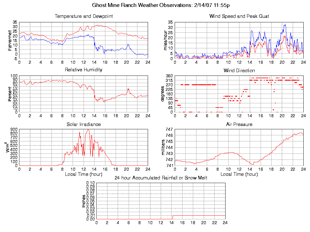 Temperature (F) 16.5 13.8 @ 07:25 31.8 @ 14:35 22.6