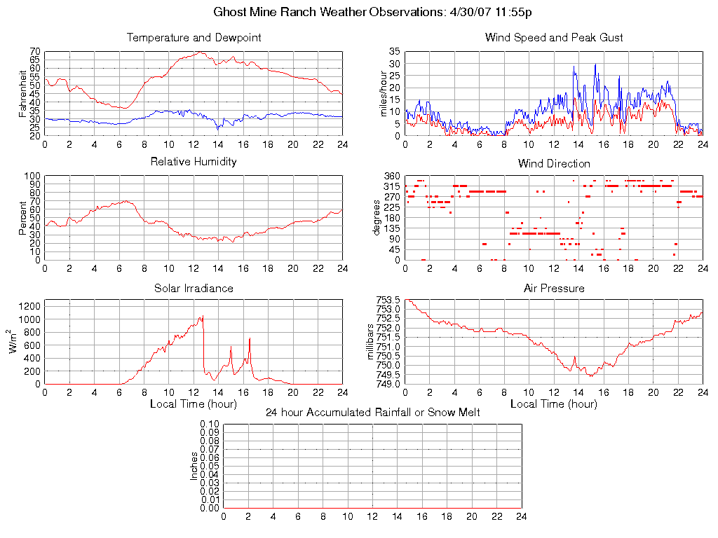Temperature (F) 44.5 36.3 @ 06:30 69.9 @ 12:30 54.1