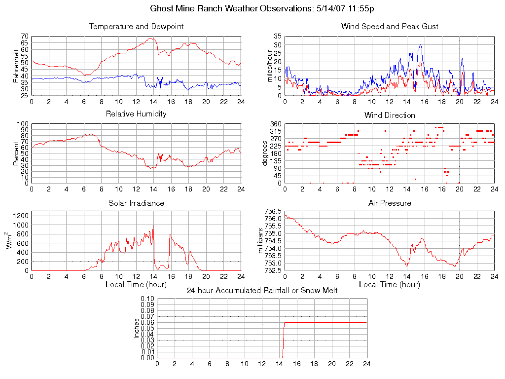 Temperature (F) 49.5 40.6 @ 06:05 68.7 @ 13:40 54.2