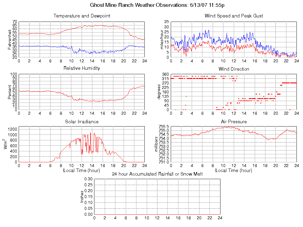 Temperature (F) 45.4 44.5 @ 23:30 65.6 @ 14:30 57.3