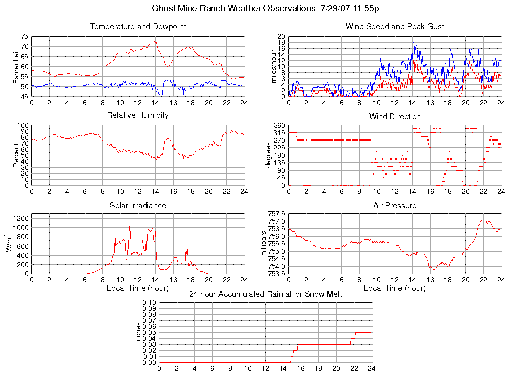 Temperature (F) 54.6 53.9 @ 22:40 72.4 @ 13:40 61.6