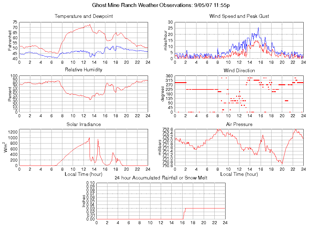 Wind Speed (mph) 1.0 0.0 @ 00:30 15.0 @ 15:05 3.3