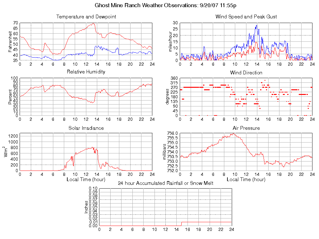 Temperature (F) 46.2 40.6 @ 06:00 69.8 @ 13:15 53.7