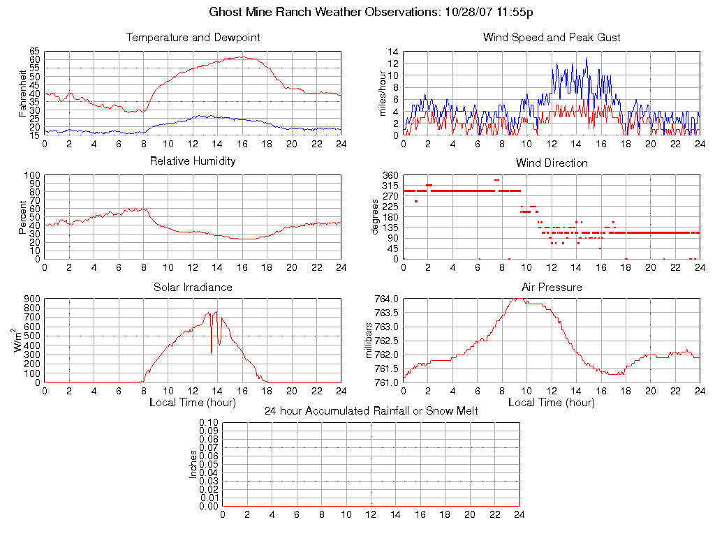 Temperature (F) 39.0 28.6 @ 06:50 61.8 @ 15:45 44.5