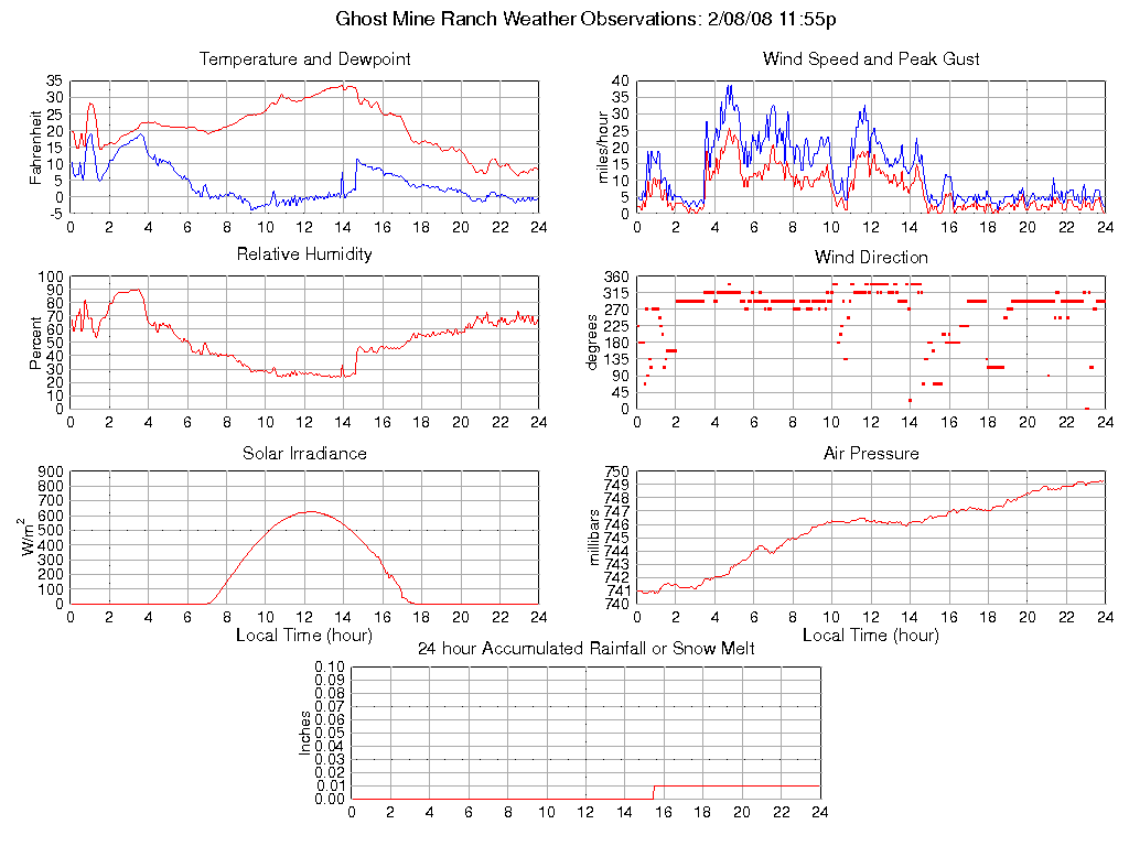 Temperature (F) 8.2 6.2 @ 22:55 33.8 @ 13:55 20.8