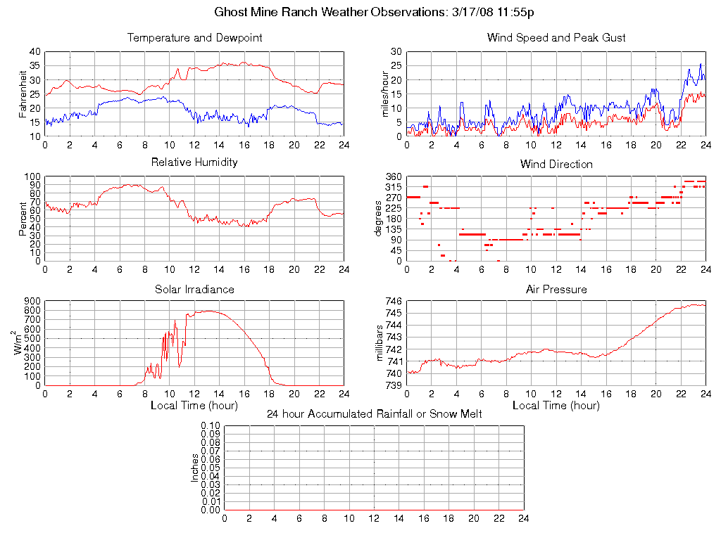 Temperature (F) 28.2 24.6 @ 00:05 36.2 @ 15:50 29.7