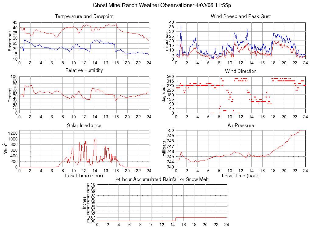 Temperature (F) 27.5 27.5 @ 23:55 43.7 @ 17:50 37.0