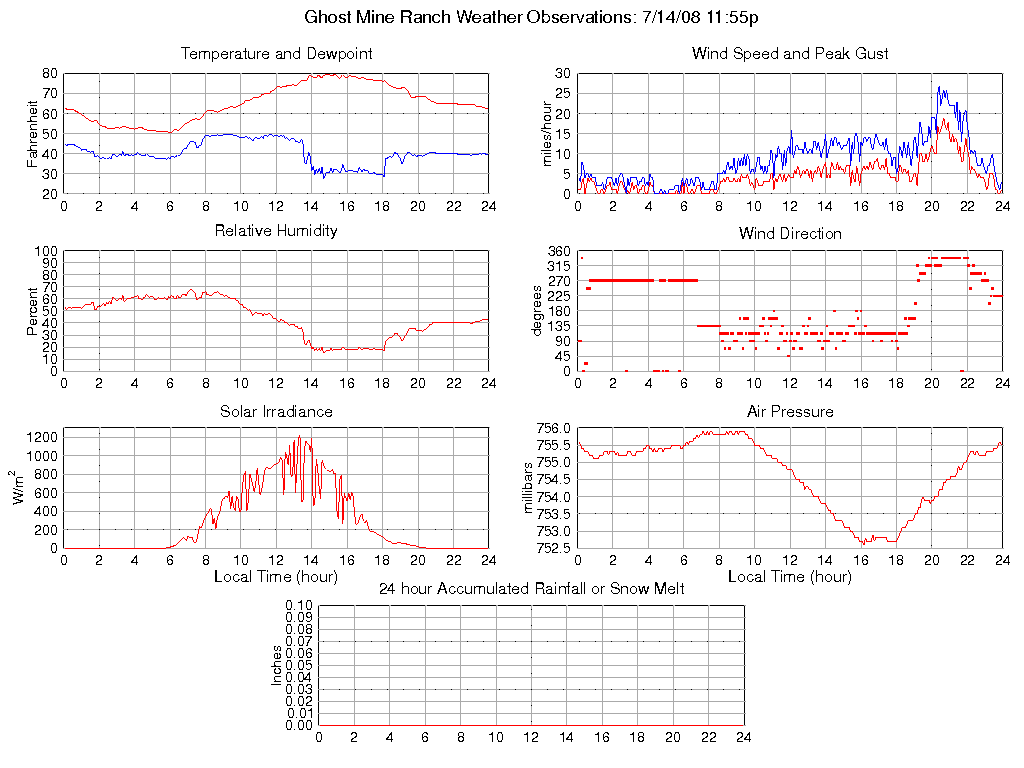 Temperature (F) 62.6 50.6 @ 06:00 79.6 @ 14:55 65.3