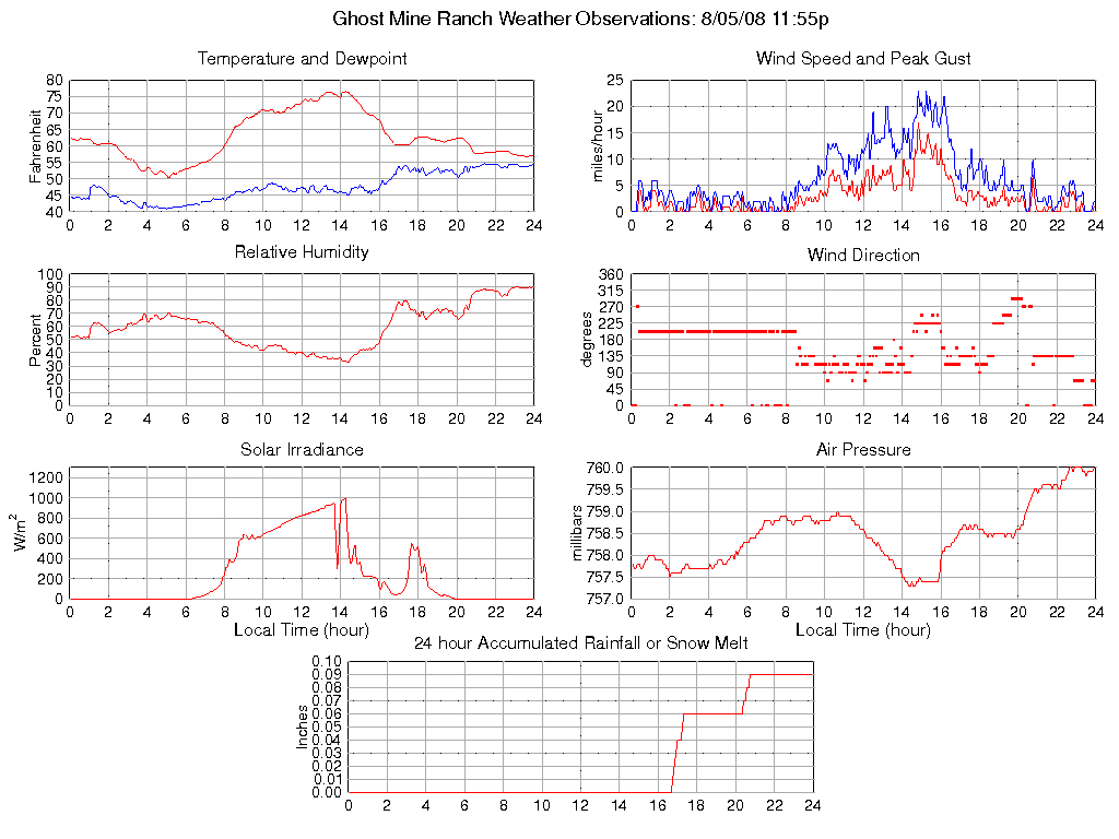 Temperature (F) 57.2 50.6 @ 05:05 76.6 @ 14:15 62.7