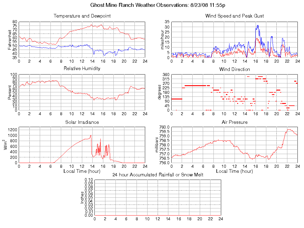 Temperature (F) 58.2 51.5 @ 06:55 76.8 @ 13:45 63.7