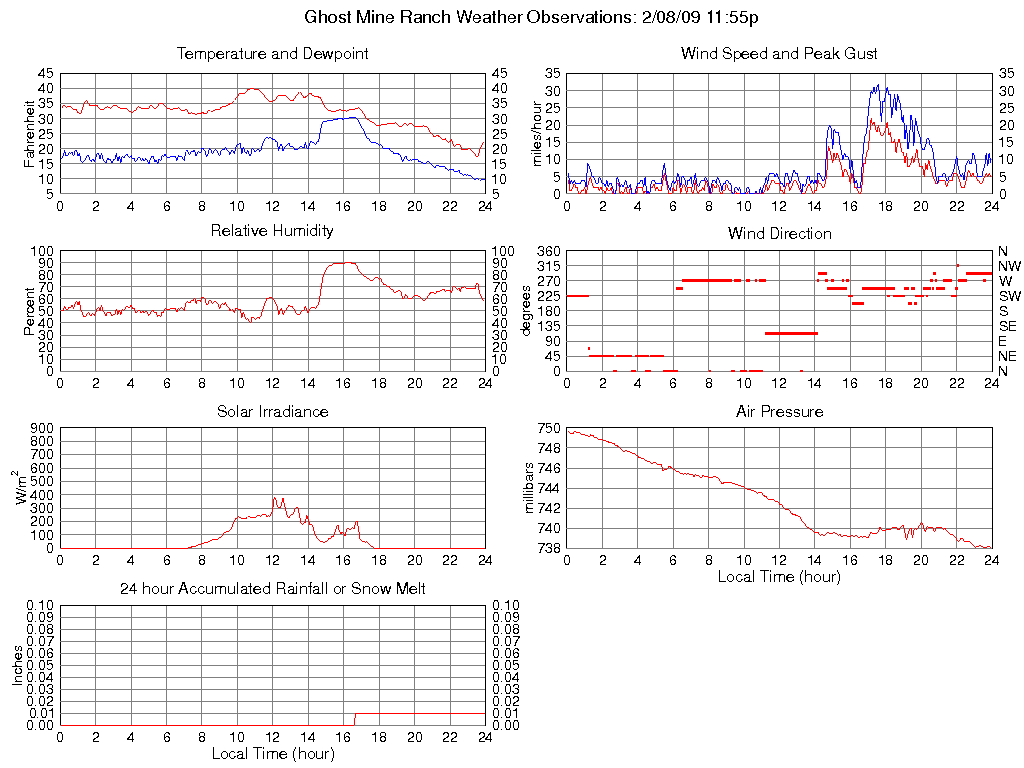 Temperature (F) 22.4 17.2 @ 23:30 40.0 @ 10:50 31.9