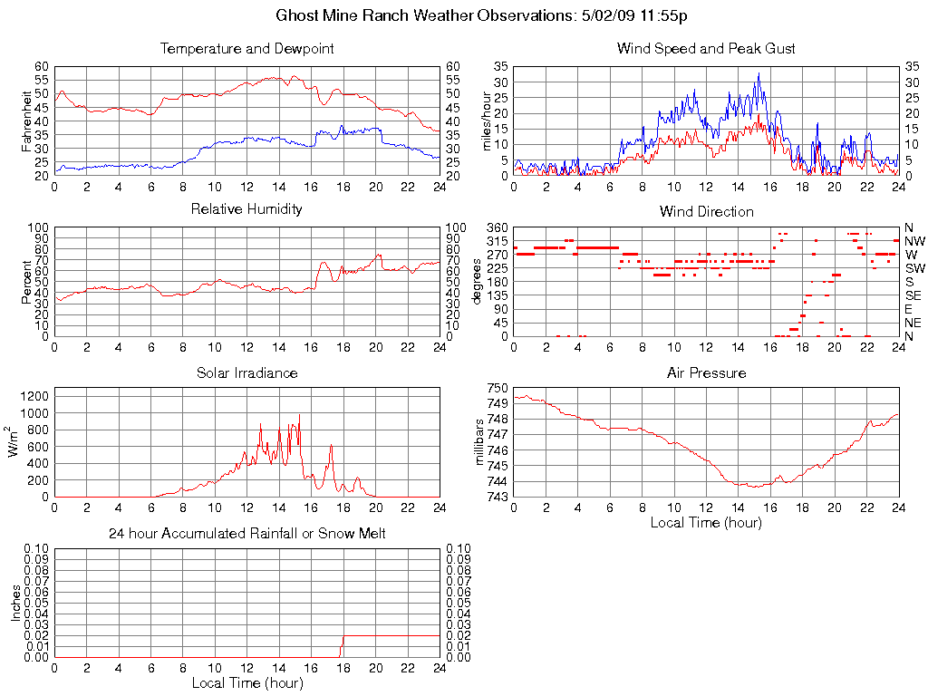 Temperature (F) 36.4 36.3 @ 23:50 56.7 @ 14:55 47.9
