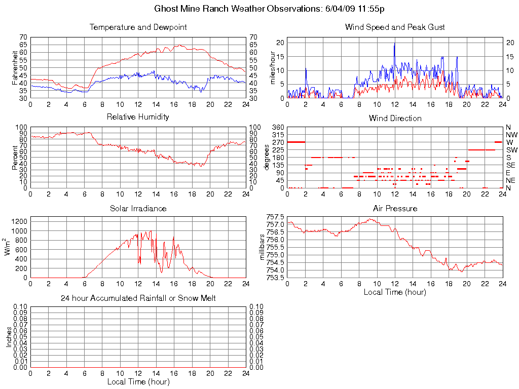 Temperature (F) 47.5 36.5 @ 04:25 65.1 @ 16:35 51.9