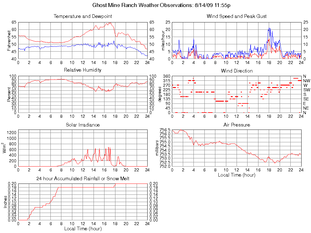 Temperature (F) 46.8 46.8 @ 23:50 64.8 @ 17:10 55.1