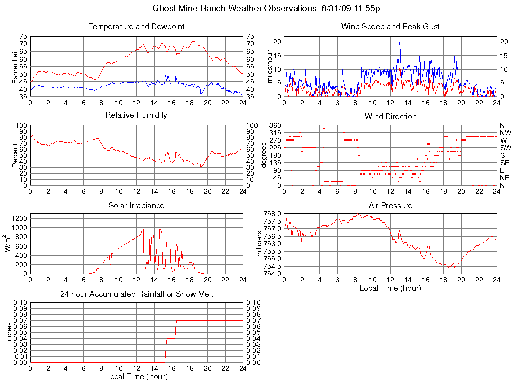Temperature (F) 50.6 44.9 @ 00:10 71.8 @ 18:30 58.7