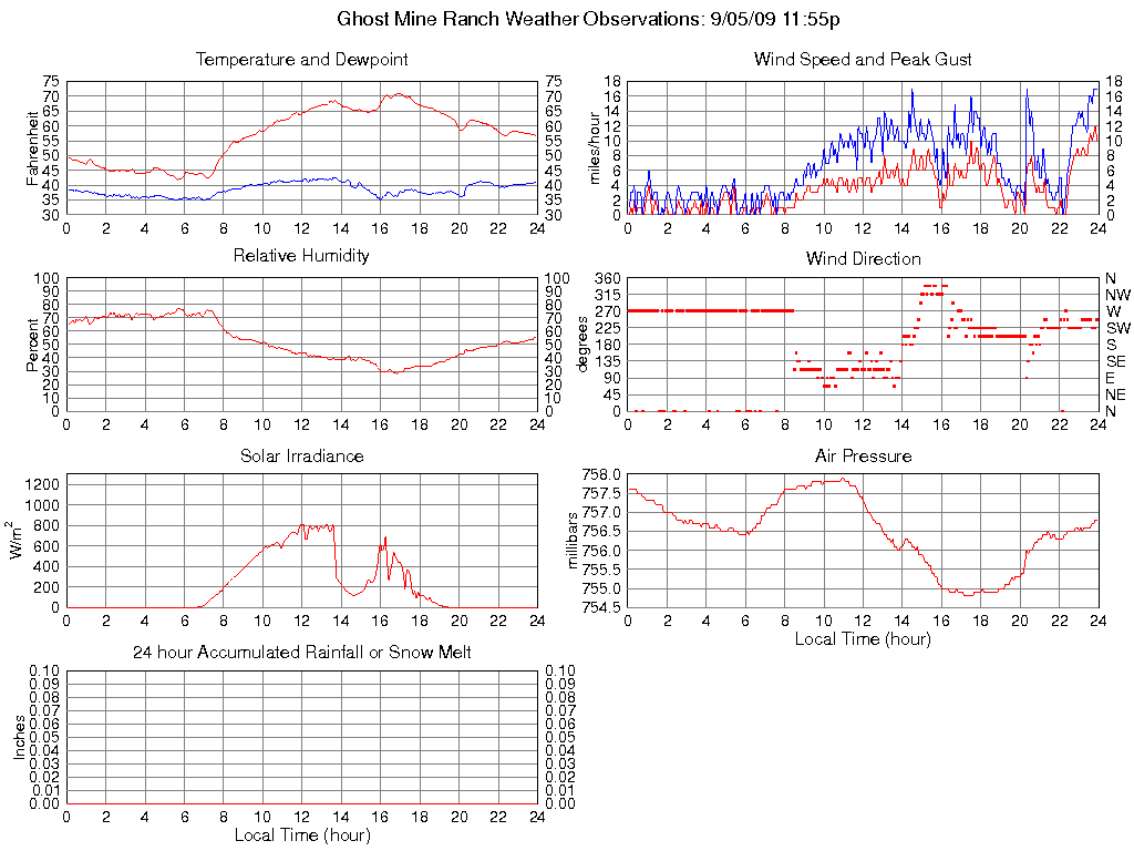 Temperature (F) 56.8 41.9 @ 05:40 71.1 @ 16:55 56.9