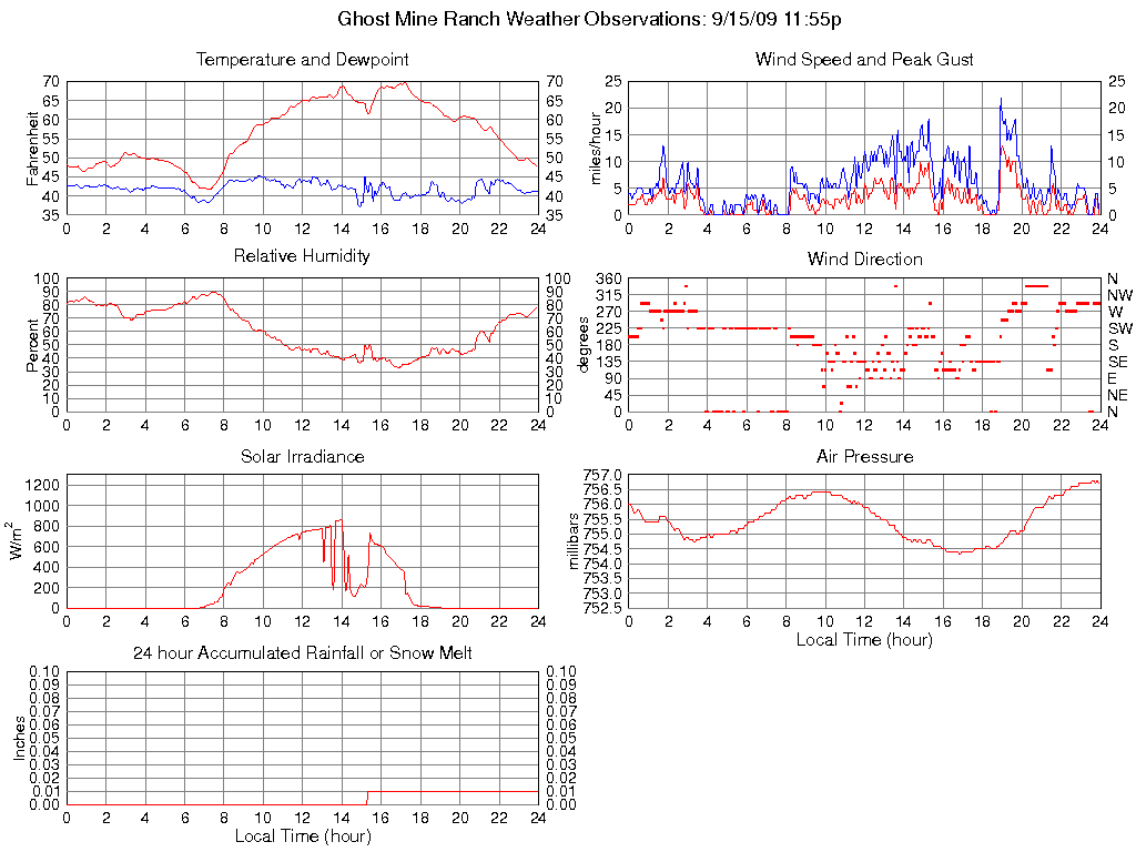 Temperature (F) 47.8 41.7 @ 07:15 69.8 @ 17:15 56.4