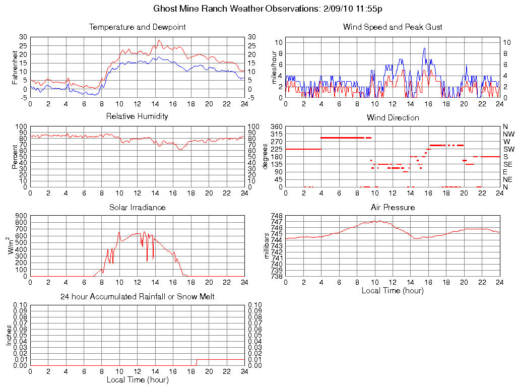 Temperature (F) 10.4 0.4 @ 07:10 28.3 @ 14:25 13.6