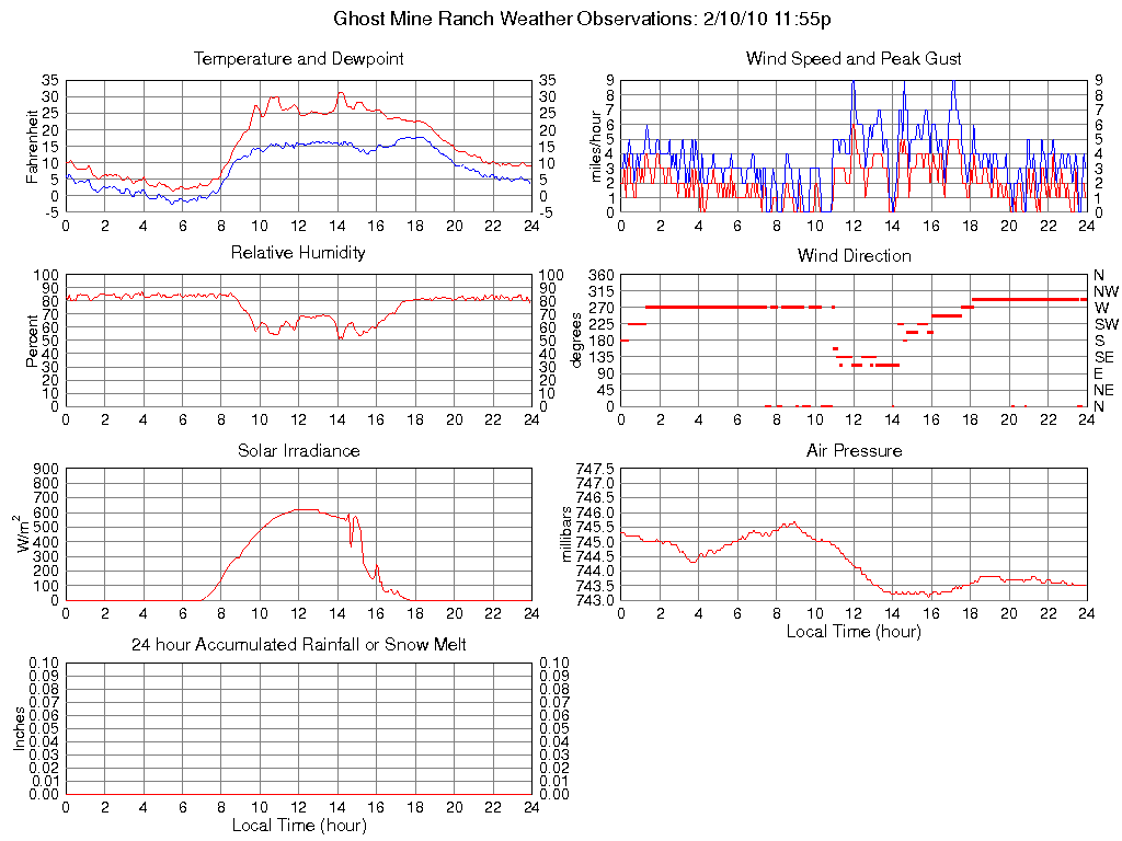 Temperature (F) 9.1 1.3 @ 05:30 31.4 @ 14:05 15.2