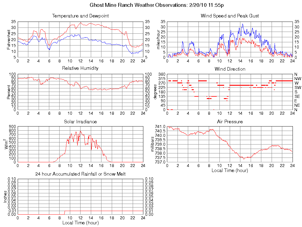 Temperature (F) 16.4 13.3 @ 22:40 34.3 @ 12:05 25.3