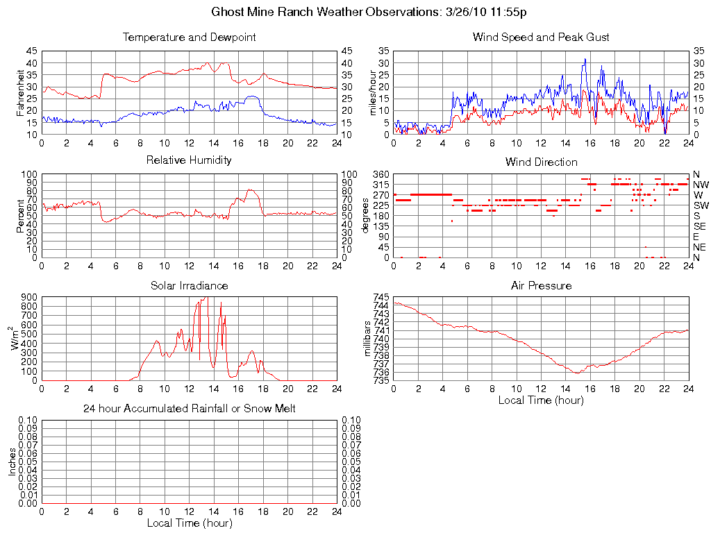 Temperature (F) 29.2 25.1 @ 03:50 40.3 @ 14:55 32.5