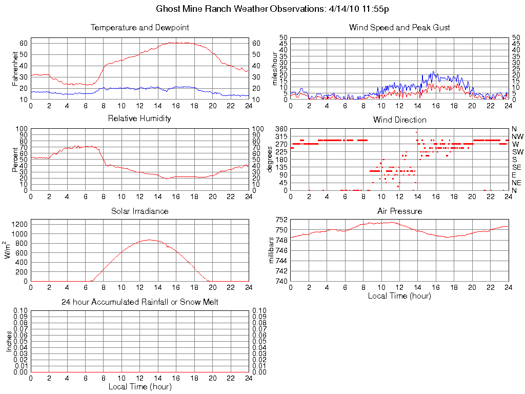 Temperature (F) 36.6 22.9 @ 04:45 60.8 @ 15:15 42.6