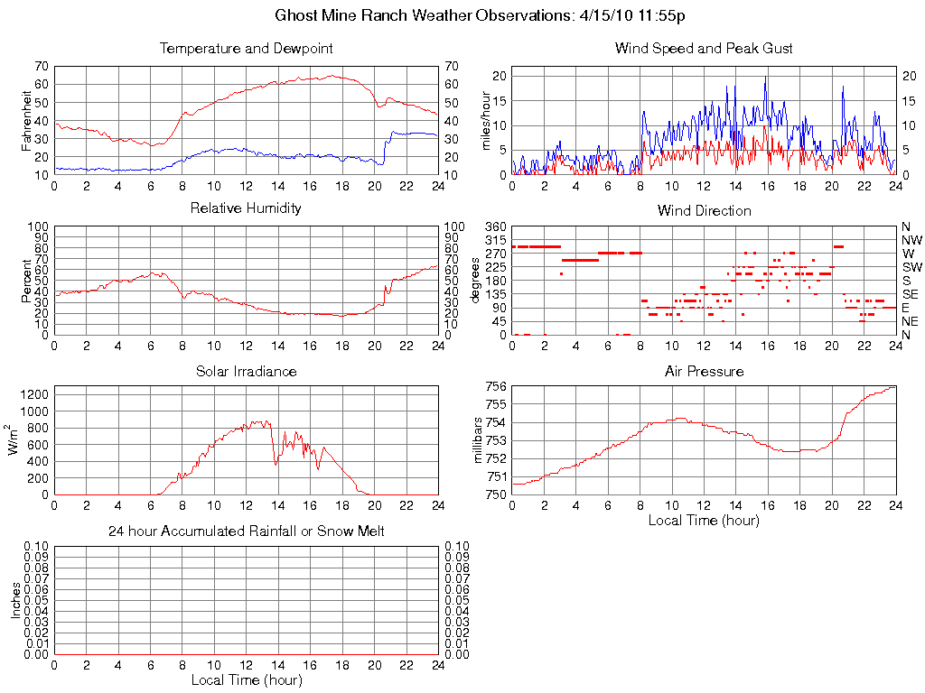 Temperature (F) 43.2 26.3 @ 06:00 64.8 @ 17:20 47.5
