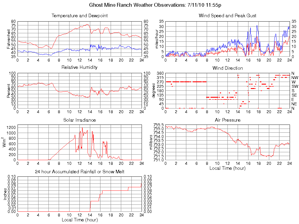 Temperature (F) 58.5 45.5 @ 06:30 76.6 @ 13:20 61.4