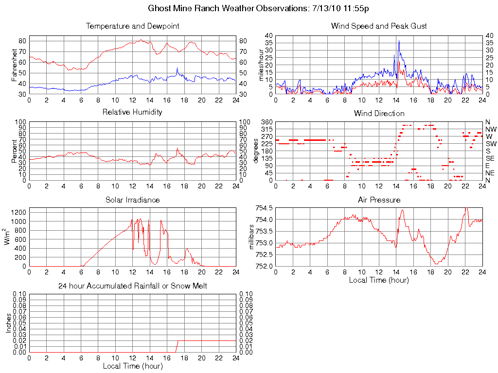 Temperature (F) 63.7 52.6 @ 04:35 81.4 @ 13:00 67.9