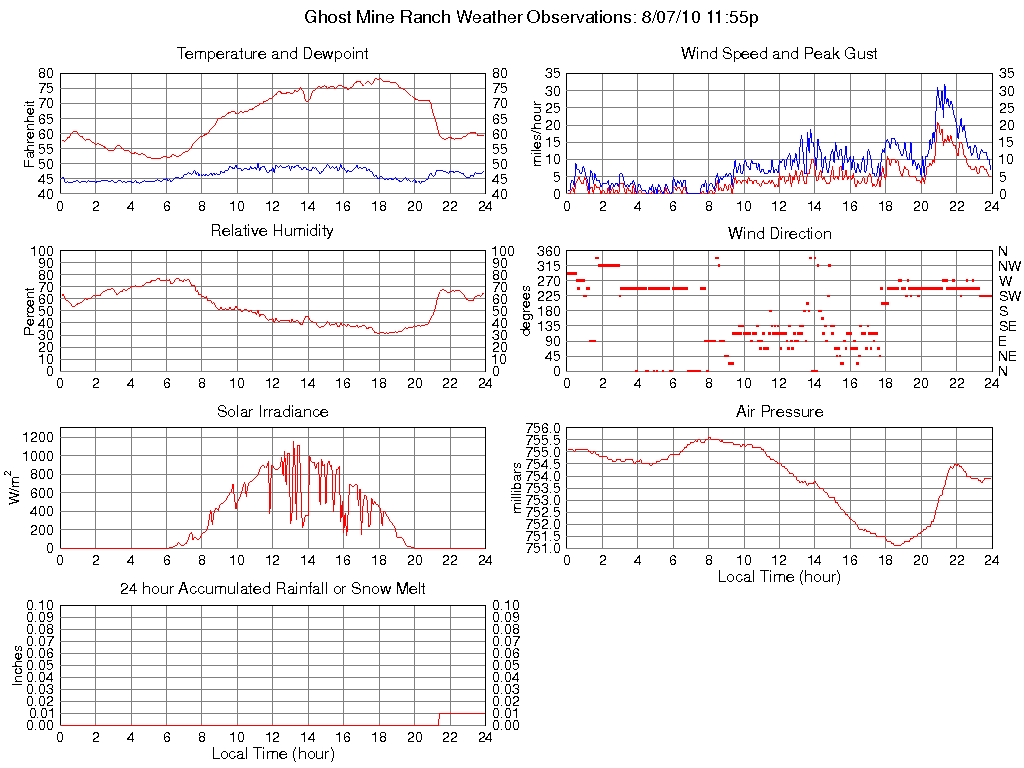 Temperature (F) 59.2 51.6 @ 05:35 78.6 @ 17:50 65.0
