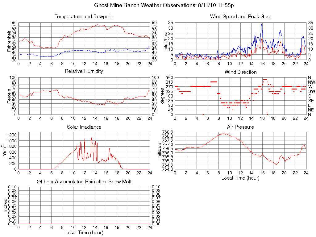Temperature (F) 58.9 45.5 @ 04:35 77.6 @ 14:30 62.9