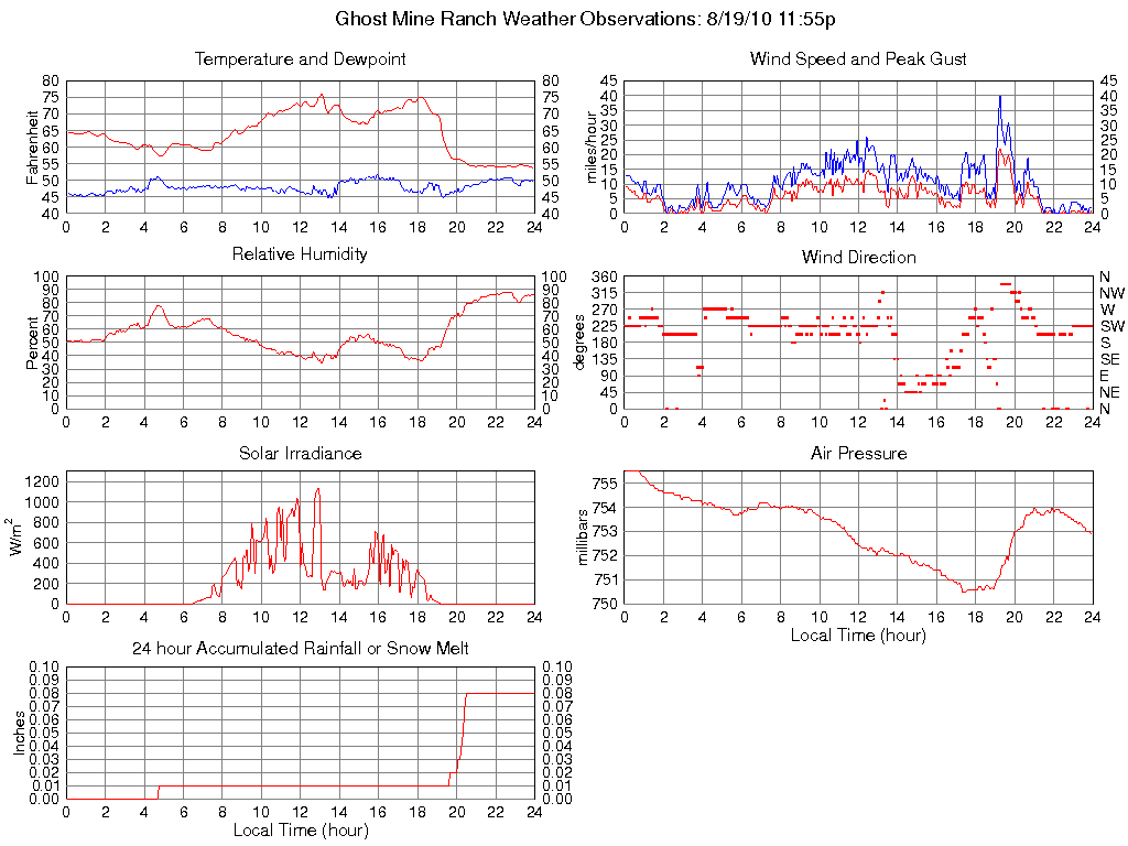 Temperature (F) 53.8 53.8 @ 23:55 76.1 @ 13:05 64.2