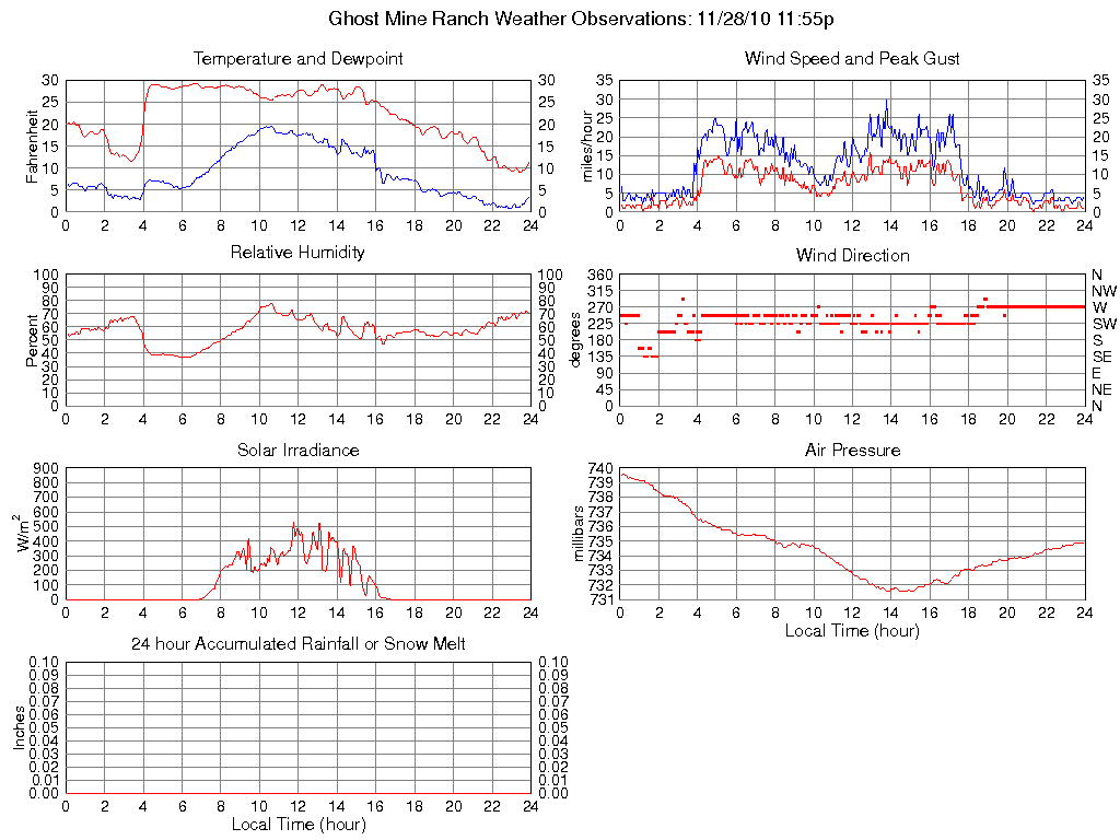 Temperature (F) 11.4 9.0 @ 23:25 29.3 @ 06:45 22.1