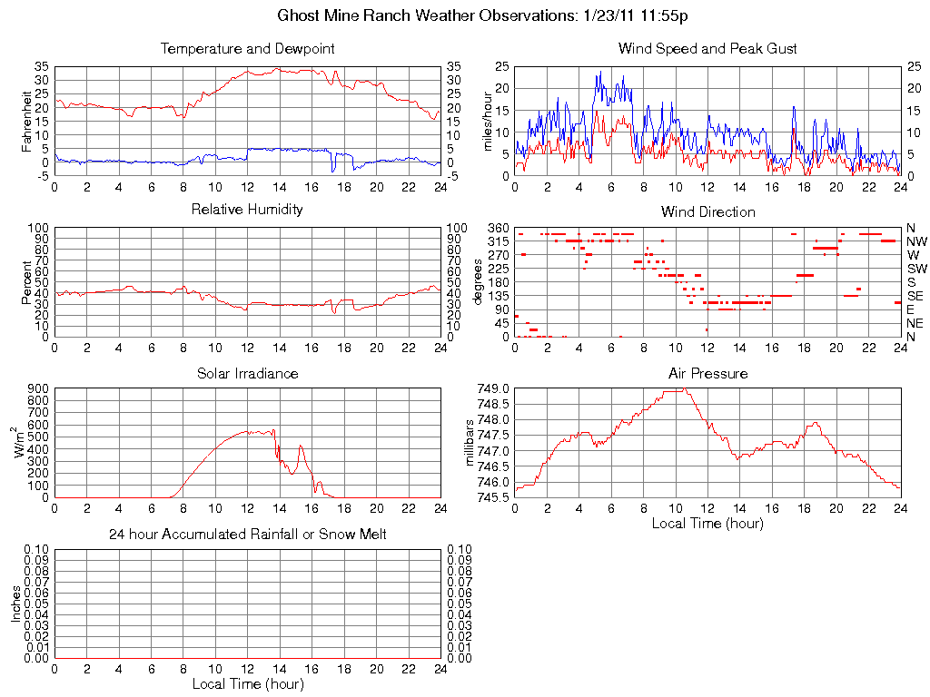 Temperature (F) 18.5 15.6 @ 23:35 34.3 @ 13:45 25.3